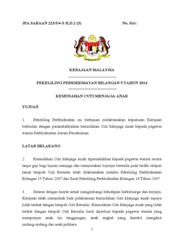 Pdf Faq Pp052014 Kemudahan Cuti Jaga Anak Pdf Uhisyam Sriib Academia Edu